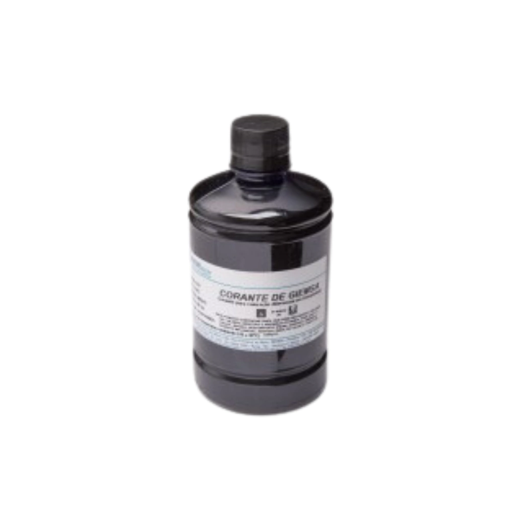 A embalagem do produto é um frasco com capacidade para 500 mL do corante, ideal para atender a uma variedade de necessidades laboratoriais.