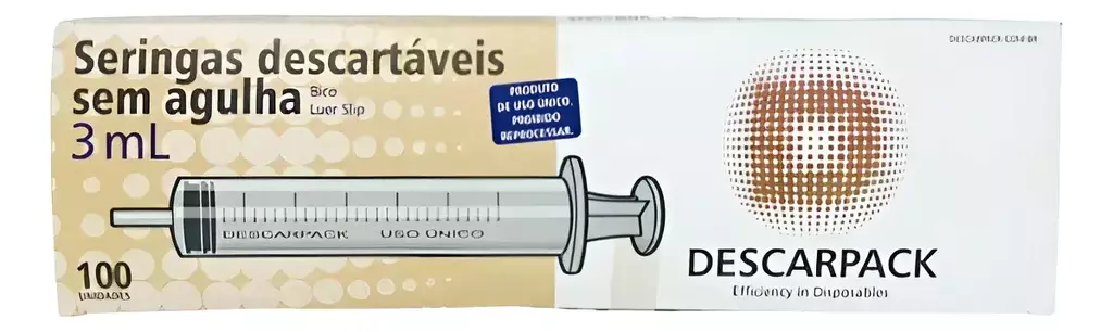 A Seringa Hipodérmica 3 Ml Luer Slip Sem Agulha da Descarpack é uma seringa descartável, projetada para o uso para a aplicação de medicamentos ou outras substâncias por via parenteral. Pode ser usada também para a coleta de sangue.