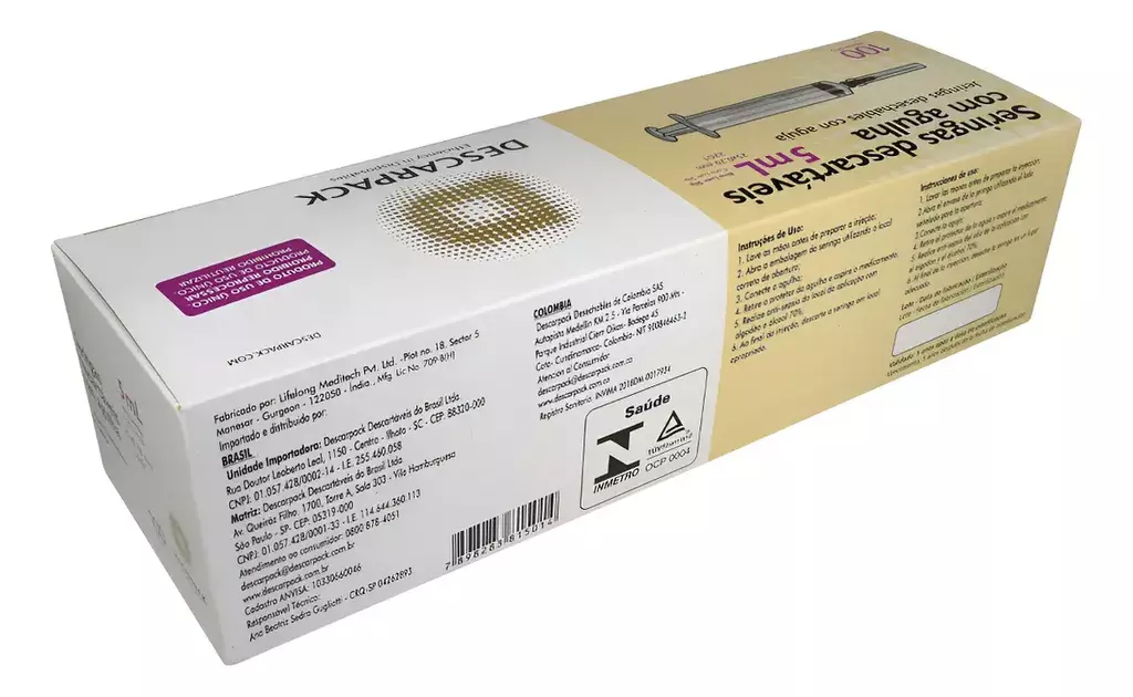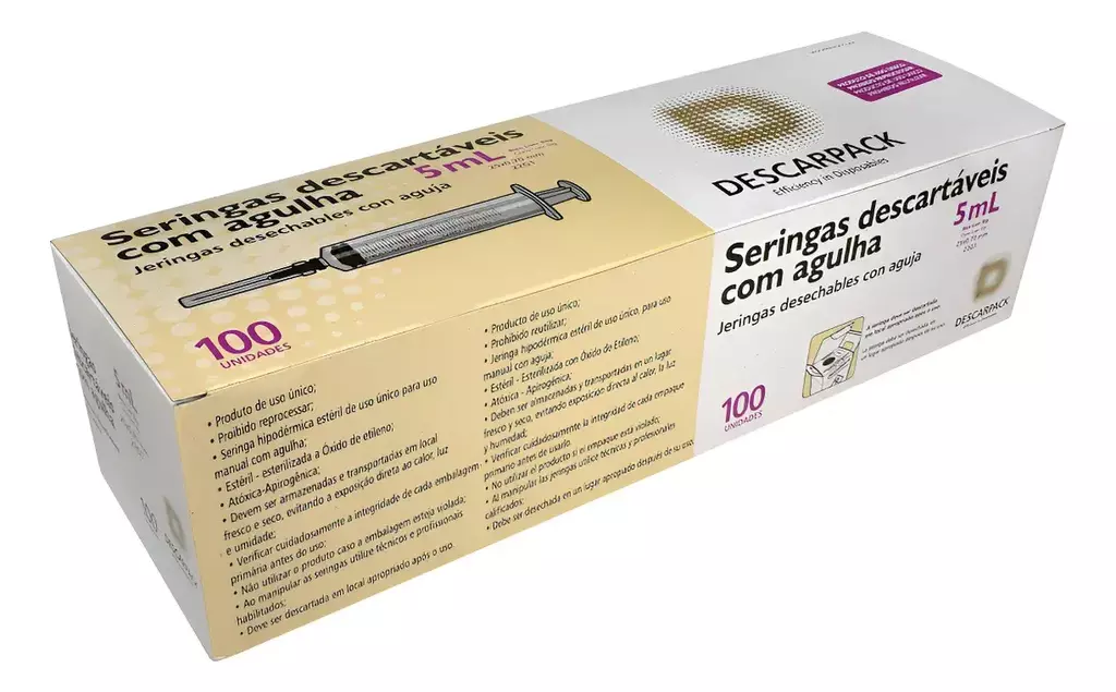 A Seringa Hipodérmica com Agulha 25 X 0,70mm da Descarpack é uma seringa descartável, concebida para a administração de medicamentos por via parenteral, além de ser usada para a coleta de sangue.