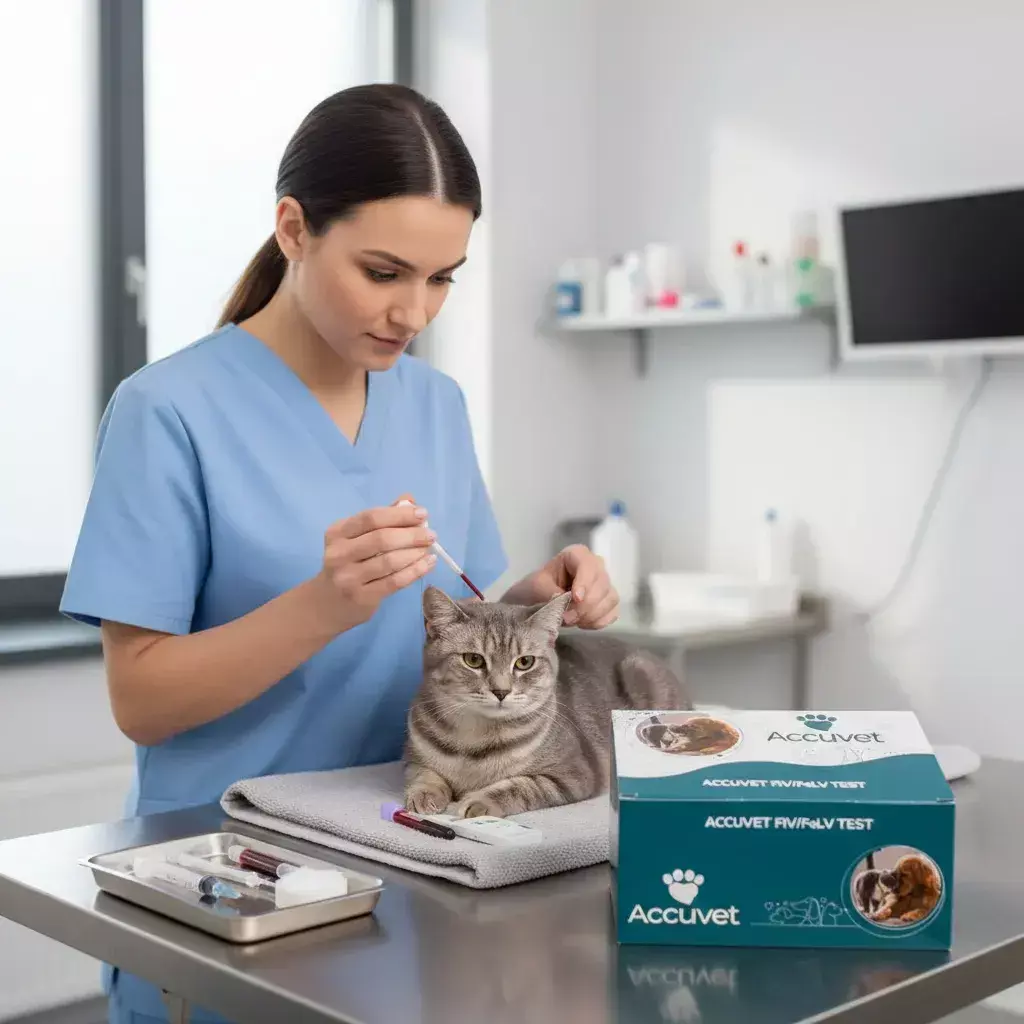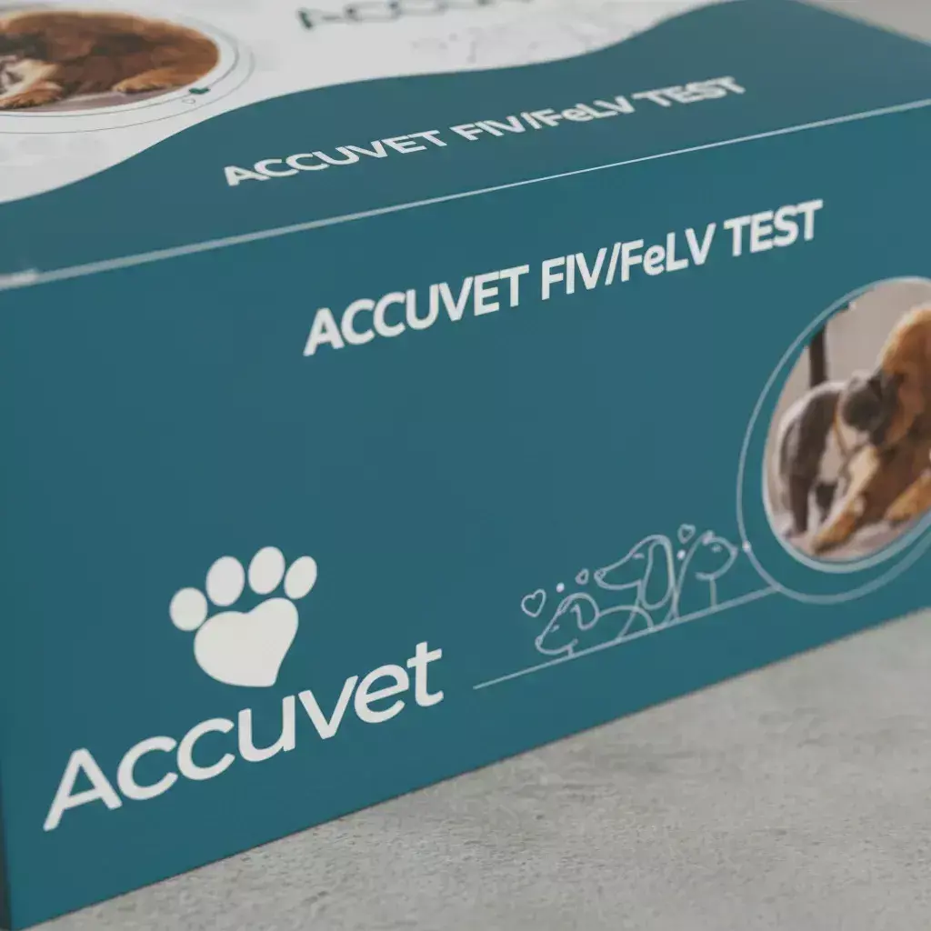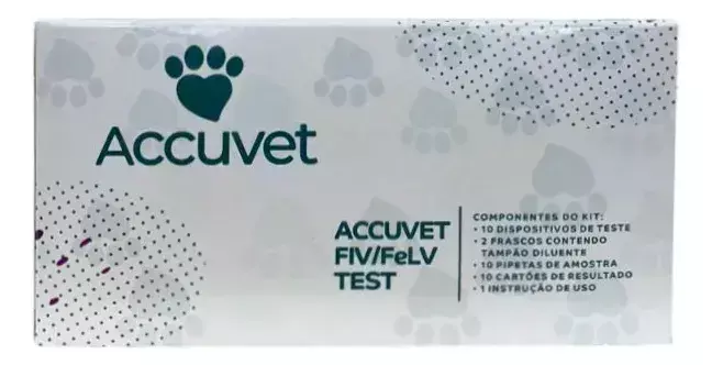O Kit de Teste Rápido FIV/FeLV da linha AccuVet (Biocon Diagnósticos) é um ensaio imunocromatográfico qualitativo e combinado para detecção simultânea de anticorpos contra o Imunodeficiência Felina (FIV) e antígenos do Leucemia Felina (FeLV) em gatos. O resultado é obtido em cerca de 5 a 10 minutos.