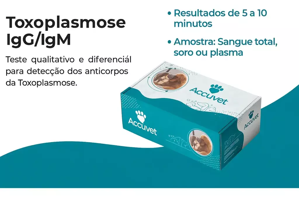 O Teste Rápido Toxoplasmose IgG/IgM da linha AccuVet é um imunoteste qualitativo e diferencial para detecção de anticorpos IgG e IgM específicos para Toxoplasma gondii em cães e gatos. O resultado é obtido em cerca de 5 a 10 minutos.